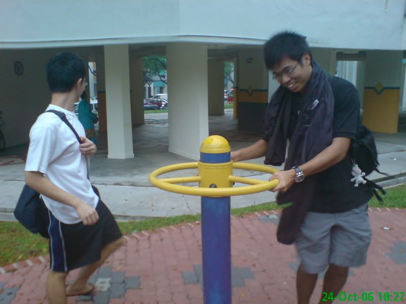 helped out in the morning at 9.. thanks to those who came early.. namely janice, sam ooi, evelyn, biwen, zavier, wei zhong.. rushed! god.. sweating like mad.. mr ng came at like 11? haha! very solemn during their vows.. haha.. then after it was all done.. played bball! not bad huh? =)