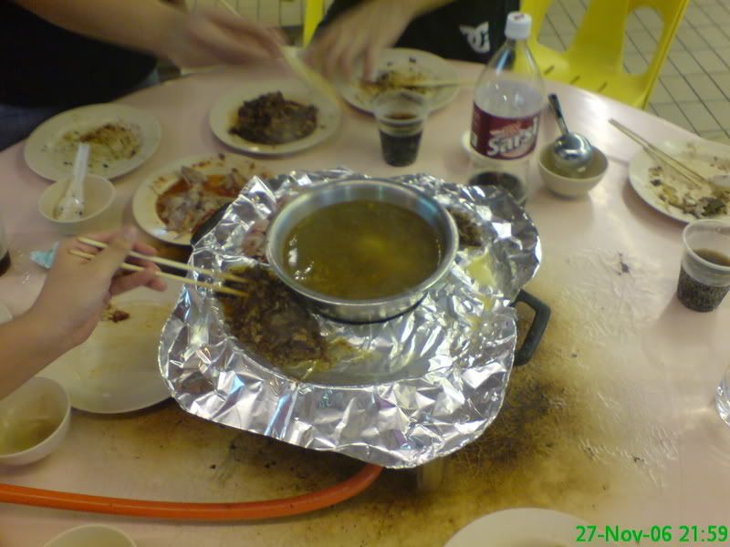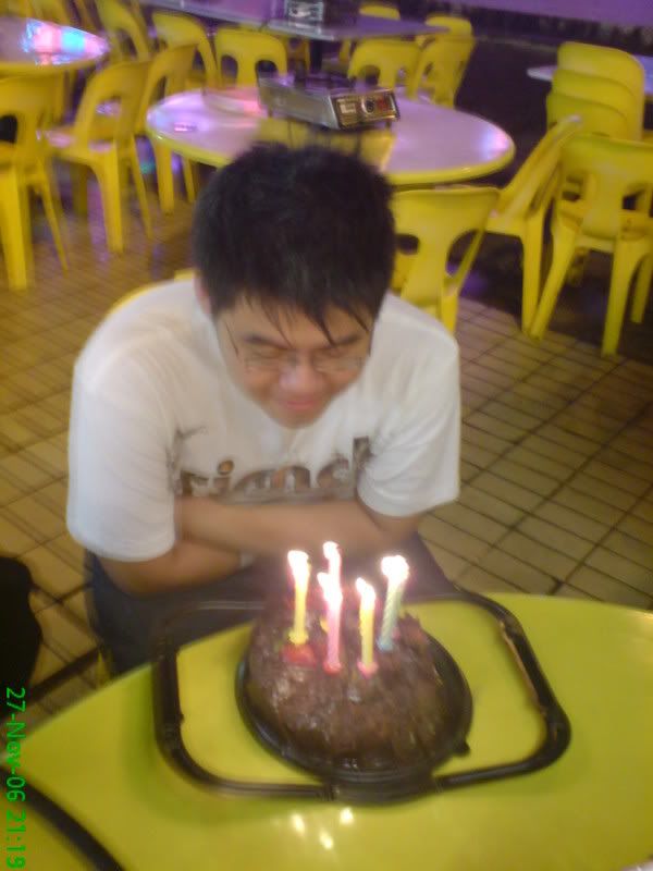 met those two quite late.. had steamboat buffet at dragon.. couldn't eat our fill cause the place had to close already.. haha.. the bday cake was a disaster.. ben and jia quan got it from plaza? then they hid the cake in jia quan's bag and the cake got smashed around.. haha.. then when we suprised charles with the cake.. it turned out dam bad... haha! but the taste was just great.. ignore how bad the cake looks can? hehe