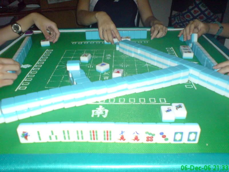 played mahjong at mr ng's place first.. kind of cool.. yup.. cool to lose money that is! mr ng had the hot hand! OMG! even before the first round.. he was up $30!